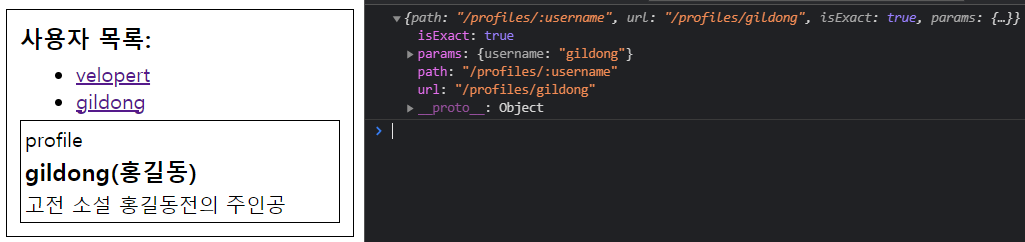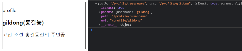 라우트 : <Route exact path="/profile/:username" component={Profile} />