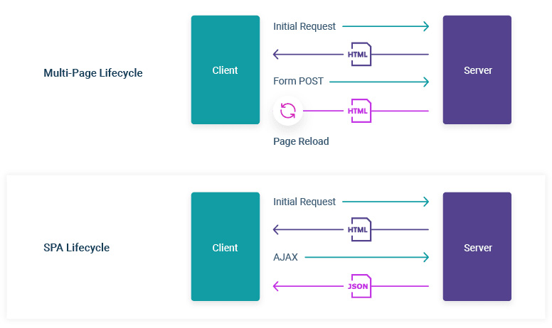 기존의 웹 브라우저는 화면 전환이 일어날 때마다 HTML을 서버에 새로 요청하면서 불필요한 로딩이 있었던 반면에